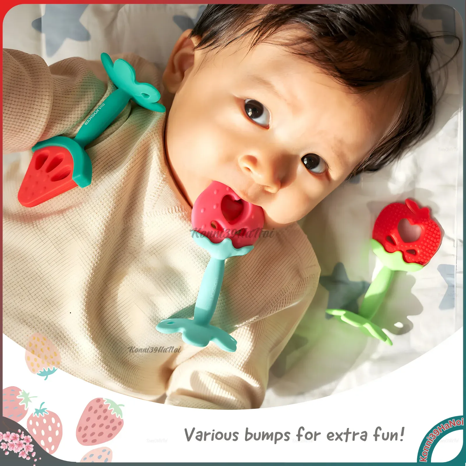 Gặm nướu Edison Mama cho bé từ 3 tháng – hình dâu tây