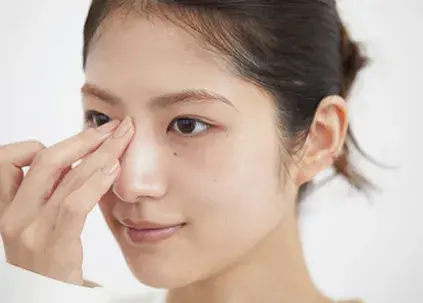 Bằng cách thoa phấn tạo khối từ góc trong của lông mày đến hõm góc trong của mắt, đồng thời tạo khối chữ V cho phần đầu mũi, sống mũi sẽ trở nên sắc nét hơn.