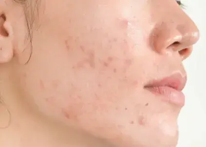 ・Mụn trứng cá thường để lại vết thâm sẹo, khiến da sần sùi.